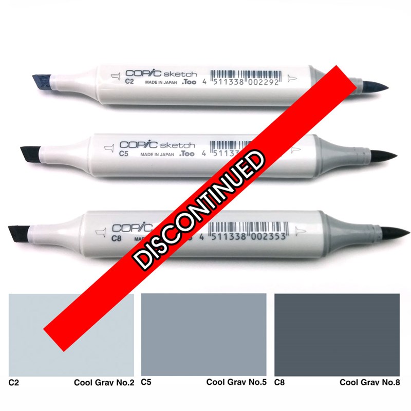 - 3 Copic Sketch Markers; Cool Grey-C2,C5,C8