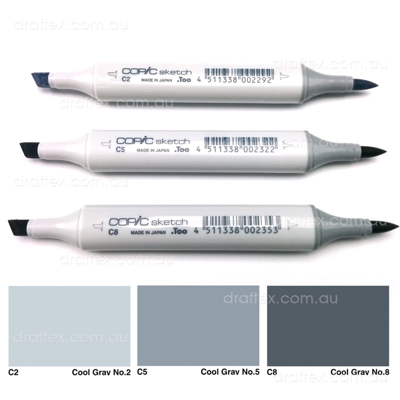 - 3 Copic Sketch Markers; Cool Grey-C2,C5,C8