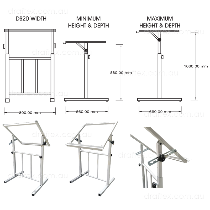 Draftex Drafting Equipment Package No.22 (DEP25A1) consists of our Draftex DS20 Drafting Stand which includes angle elevation and height adjustment and a 1200 x 800mm drawing board to suit the equipped Tecnostyl Drafting Machine.
